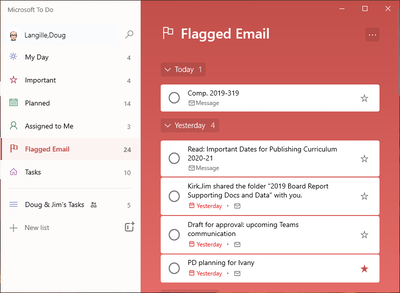 And then we have my favourite part of Microsoft To Do. There is a special list for Flagged Email. Because, face it: we all use our email inbox as a way to capture tasks. If you flag an email, it shows up in To Do.