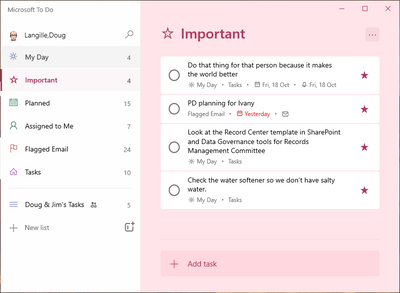 I make it a practice to pick at least one or two Important items to add to My Day.