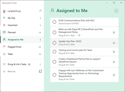 The list below it is Assigned to Me and that’s for shared tasks within To Do and Microsoft Planner. We’ll discuss shared tasks and Planner another time.